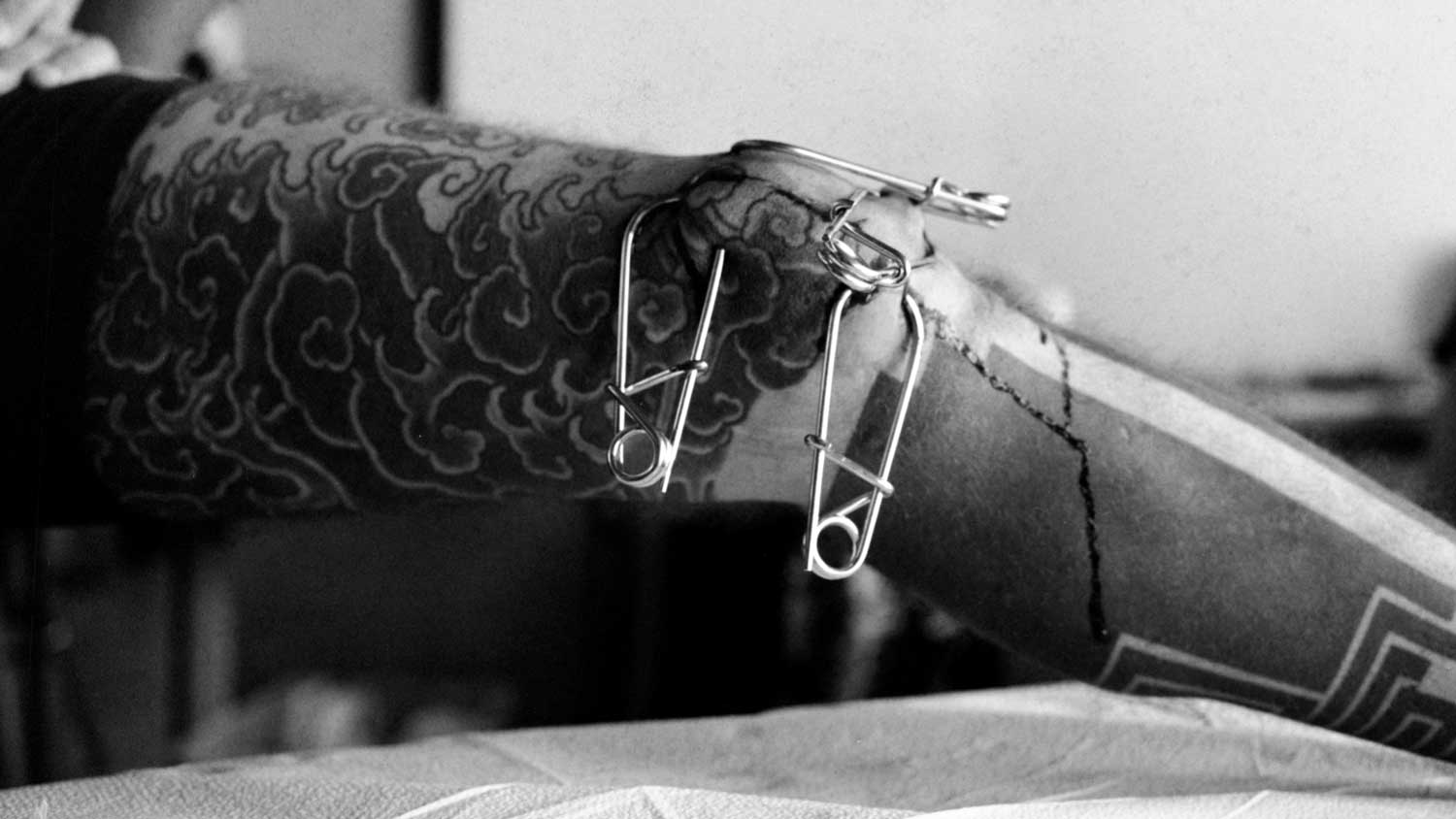 Hook suspension, or body suspension, is the practice of temporarily suspending one’s body with hooks pierced through the skin. While many cultures throughout history have developed variations of this practice, contemporary suspension has evolved into a form of personal expression, performance art, and ritualistic practice. Every suspension is unique and each person sets their own intention for the experience.